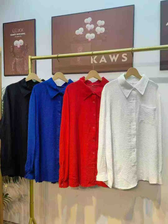 198件春夏季女装肌理感宽松大版翻领休闲衬衫上衣开衫防晒,单款四色,码数S-XXL码 独立包装。
