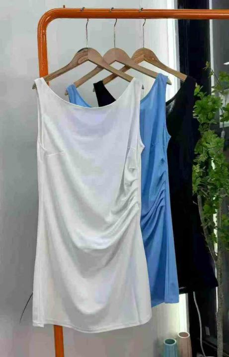 背心裙夏女无袖显瘦外穿小个子辣妹纯欲风皱褶吊带连衣裙,独立包装,码数1-4码,2码裙长76厘米,大货蓝色白色为主,数量487件,分货加1,货号1011#23