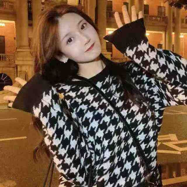 9.9清52件女装圆领千鸟格套头毛衣,宽松大版慵懒风,独立包装货品干净...