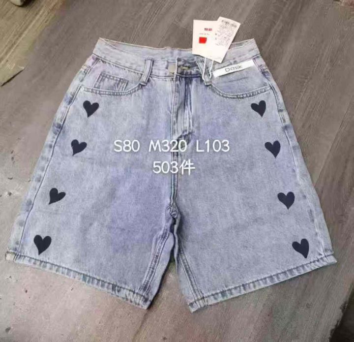 拉夏贝尔爱心牛仔短裤女☕️300条全清9.9元,码数SML,独立包装。有码数清单,夏季a字牛仔中裤高腰五分牛仔直筒阔腿裤
