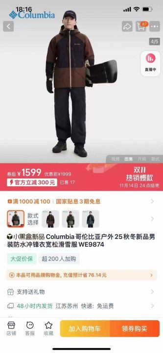 哥伦比亚滑雪服套装,上衣➕裤子,2000套。 货...