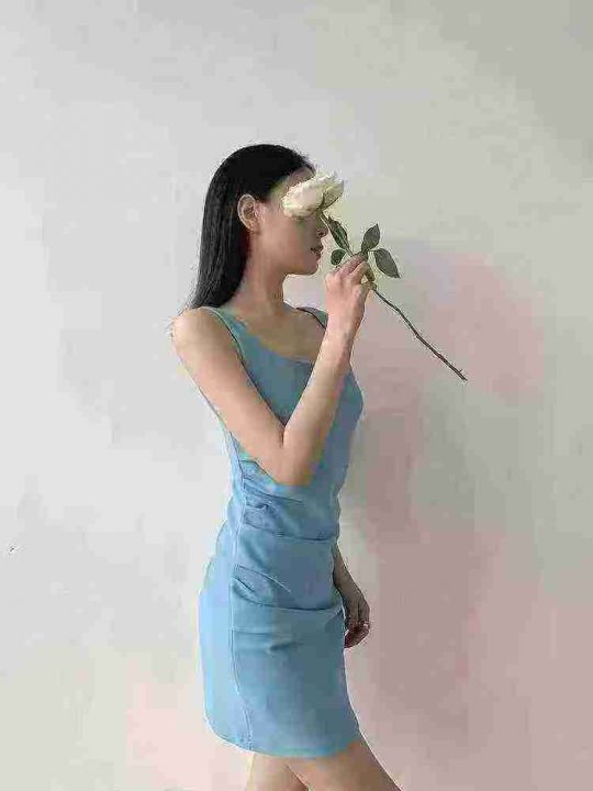 背心裙夏女无袖显瘦外穿小个子辣妹纯欲风皱褶吊带连衣裙,独立包装,码数1-4码,2码裙长76厘米,大货蓝色白色为主,数量487件,分货加1,货号1011#23