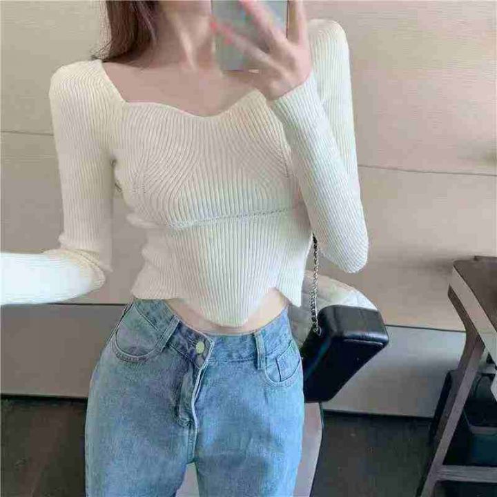 200件左右2025秋冬新款洋气紧身短款辣妹法式方领锁骨上衣针织毛衣打底衫内...