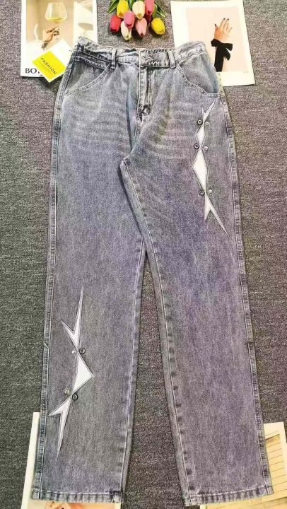 时尚ins小众别致遮肉百搭牛仔长裤,[爱心]50件左右,款号#A602,S码为主,码数S-2XL,穿80-150斤,万佳档口货,原包装️无瑕疵,[666]实体店品质