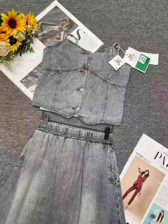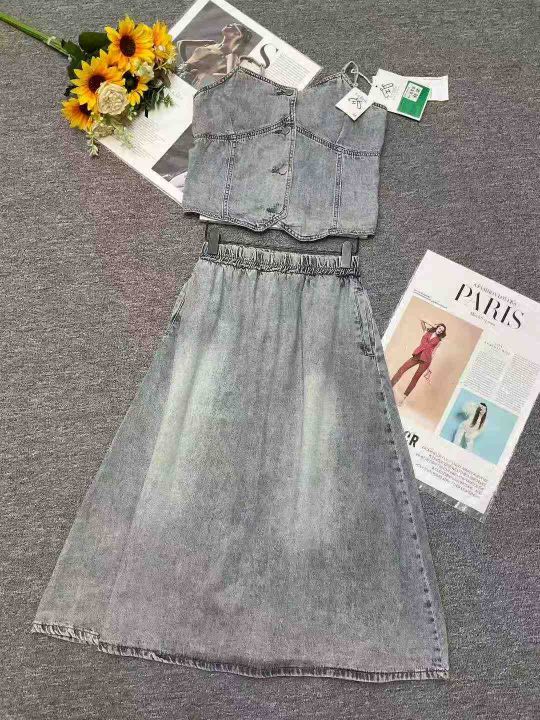 捡漏款,夏季新款美式复古辣妹牛仔吊带背心+牛仔半身长裙两件套,独立包装带吊牌,码数S-L码, 30套,全清11.8元超低价秒杀!