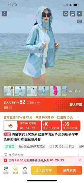 防晒衣女2025新款夏季防紫外线韩版骑车中长款防晒衫防晒服薄外套,总数量7590件,码数m,l,有独立包装,全清6.5元秒