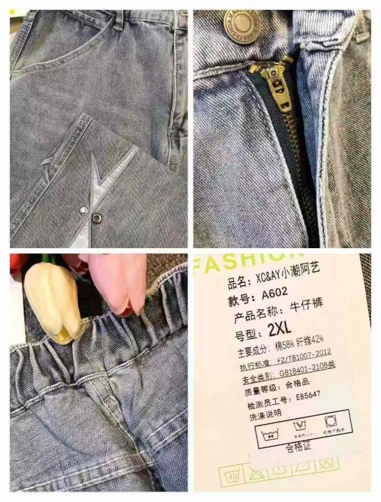 时尚ins小众别致遮肉百搭牛仔长裤,[爱心]50件左右,款号#A602,S码为主,码数S-2XL,穿80-150斤,万佳档口货,原包装️无瑕疵,[666]实体店品质