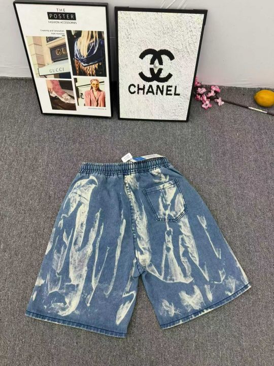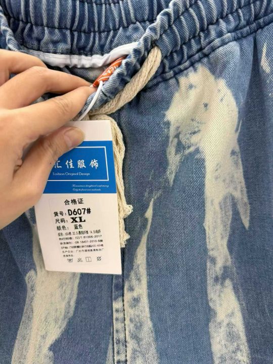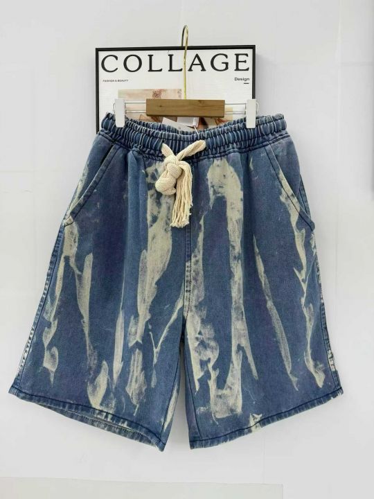 扎染牛仔短裤男士夏季松紧带直筒宽松中裤美式潮牌五分裤子男款,数量204件,码数S-3XL,独立包装无瑕疵。