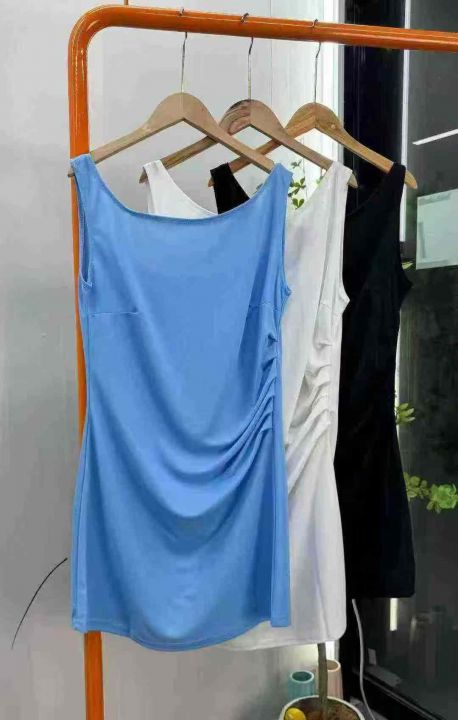 背心裙夏女无袖显瘦外穿小个子辣妹纯欲风皱褶吊带连衣裙,独立包装,码数1-4码,2码裙长76厘米,大货蓝色白色为主,数量487件,分货加1,货号1011#23