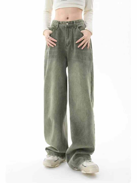 品牌原单高腰宽松复古直筒阔腿牛仔长裤,独立包装带吊牌,码数XS-L码, 93件,全清9.9元超低价秒杀!