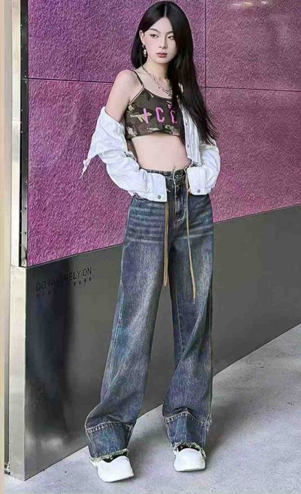 秋季新品设计款洗水棉网红爆款直筒阔腿遮肉显瘦抽绳牛...