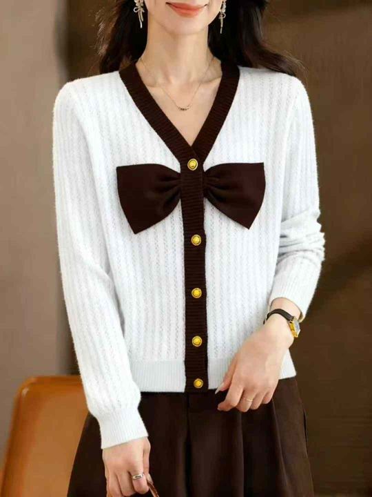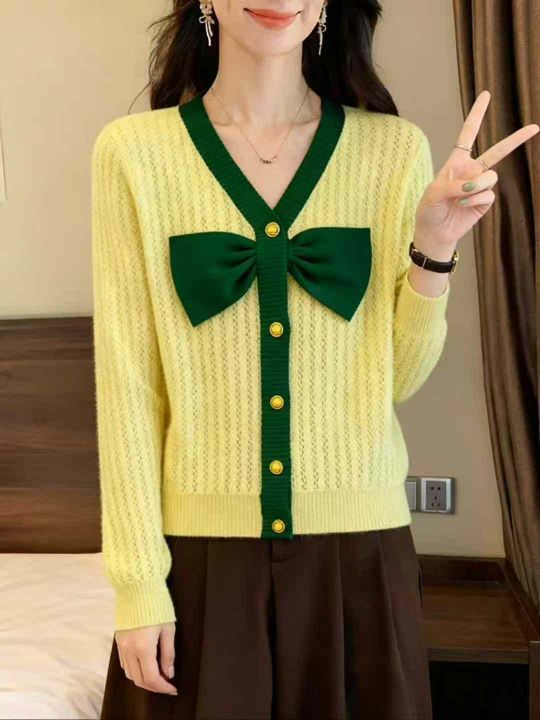 秋季新品优雅气质港风复古chic洋气蝴蝶结名媛小香风长袖针织毛衣,独立包装,均码面料柔软舒适宽松版,890件,全清9.9元超低价秒杀!分货加一!