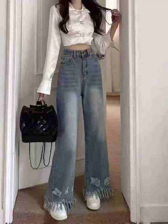 天猫下架一批高品质网红靓妹女装洗水棉小整杂款牛仔阔腿直筒烟管紧身牛仔裤...