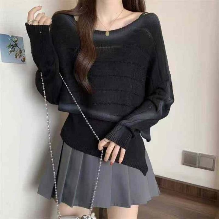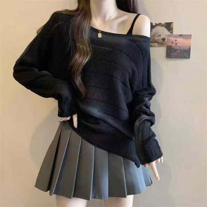 秋季新品美拉德色系宽松胖mm设计感长袖针织衫+冰丝吊...
