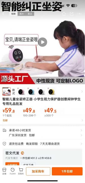 智能儿童坐姿矫正器2千个左右,价格便宜...