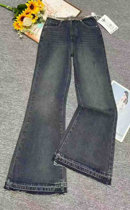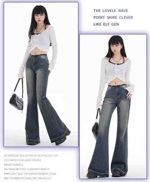 秋季新品高品质女装洗水棉网红复古爆款喇叭牛仔裤,独...