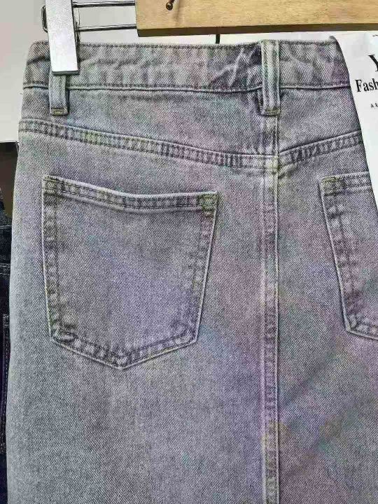 靓妹款半身裙 春秋爆款 高腰显瘦前开叉a字包臀牛仔中...