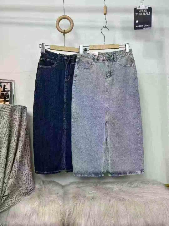 靓妹款半身裙 春秋爆款 高腰显瘦前开叉a字包臀牛仔中长款裙子,单款两色,蓝色少量,数量428条,独立包装带腰牌防伪扣,尺码xs-xl码,全清12.9秒杀分货+1