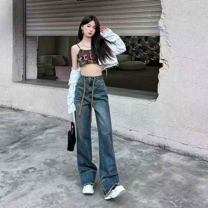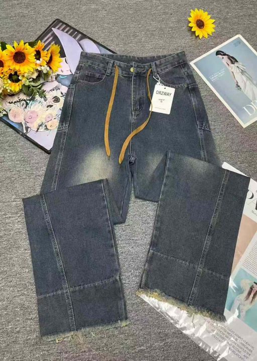 秋季新品设计款洗水棉网红爆款直筒阔腿遮肉显瘦抽绳牛仔裤,独立包装带吊牌,码数XS-L码,420件,全清11.8元超低价秒杀!分货加一!