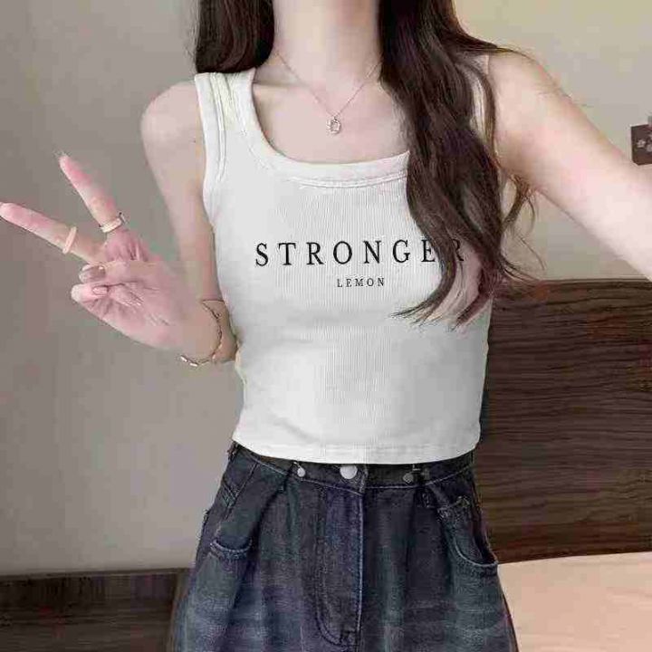 4.8清340件靓妹辣妹无袖字母印花白色吊带打底背心女遮副乳小个子修身百搭短款上衣 码数S-XL 独立包装