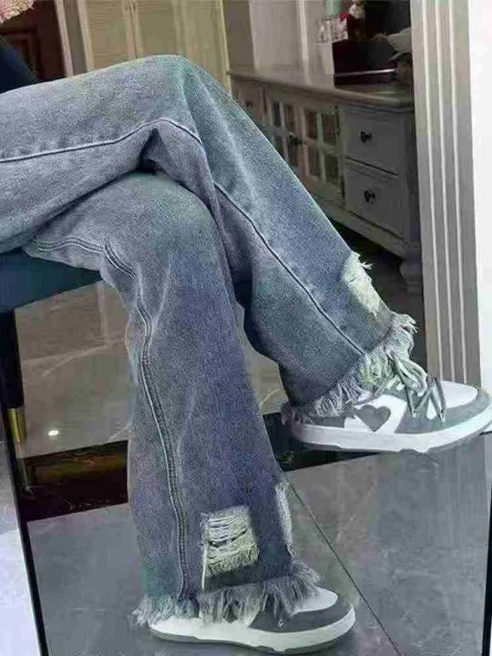 时尚洋气毛边破洞直筒牛仔裤550件,码数:XS-3XL,整款两色,品质好,内包边包条,独立包装带吊牌,全清7.8元。分货➕1。