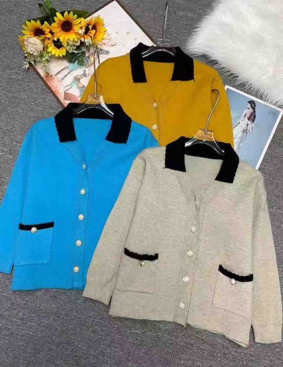早秋新款小香风撞色翻领温柔风减龄百搭宽松显瘦毛衣开...