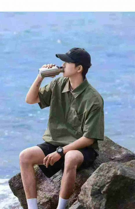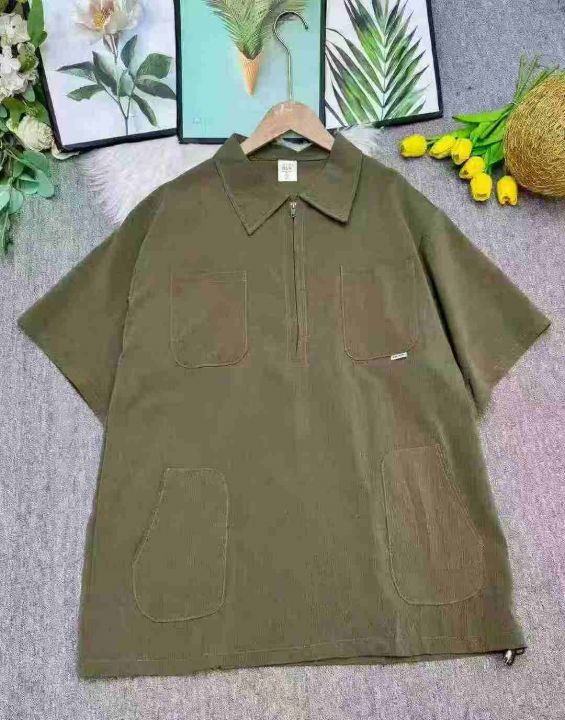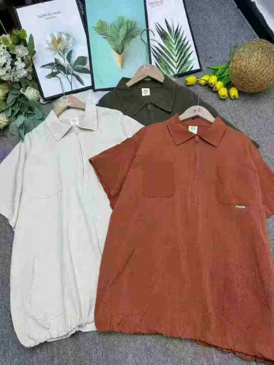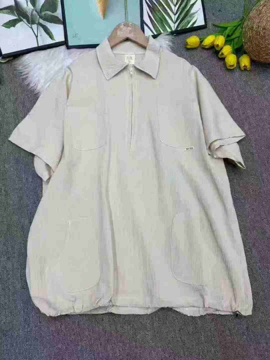 捡漏100件日系复古拉链潮牌翻领短袖t恤潮流宽松百搭工装衬衣,独立包装,码数1-3码(XL-3XL),货号925/81