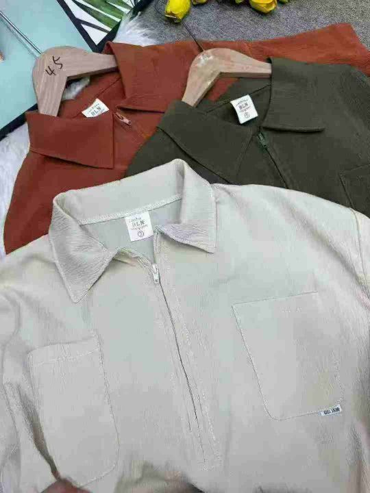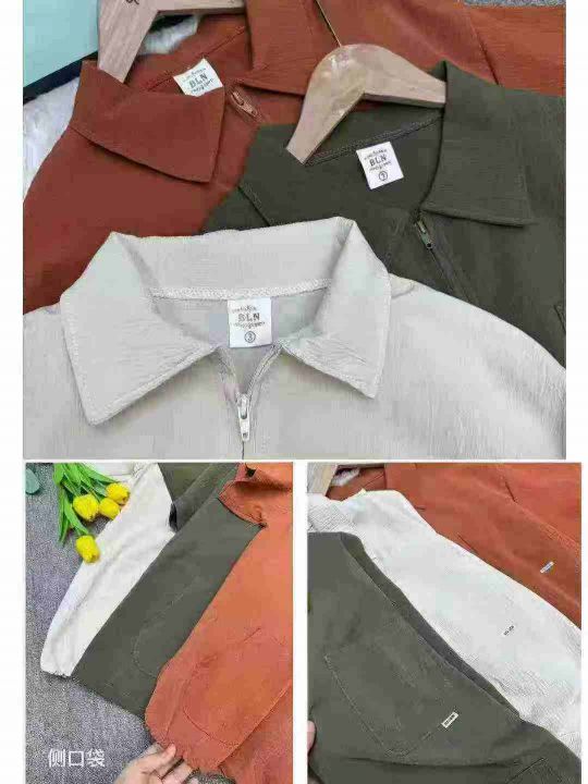 捡漏100件日系复古拉链潮牌翻领短袖t恤潮流宽松百搭工装衬衣,独立包装,码数1-3码(XL-3XL),货号925/81