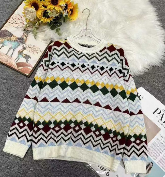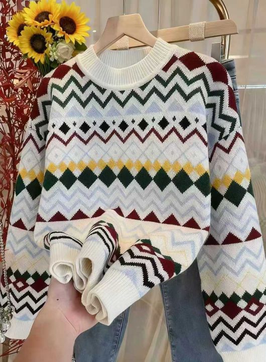 秋冬新款宽松慵懒风提花圆领北极绒套头毛衣,独立包装...