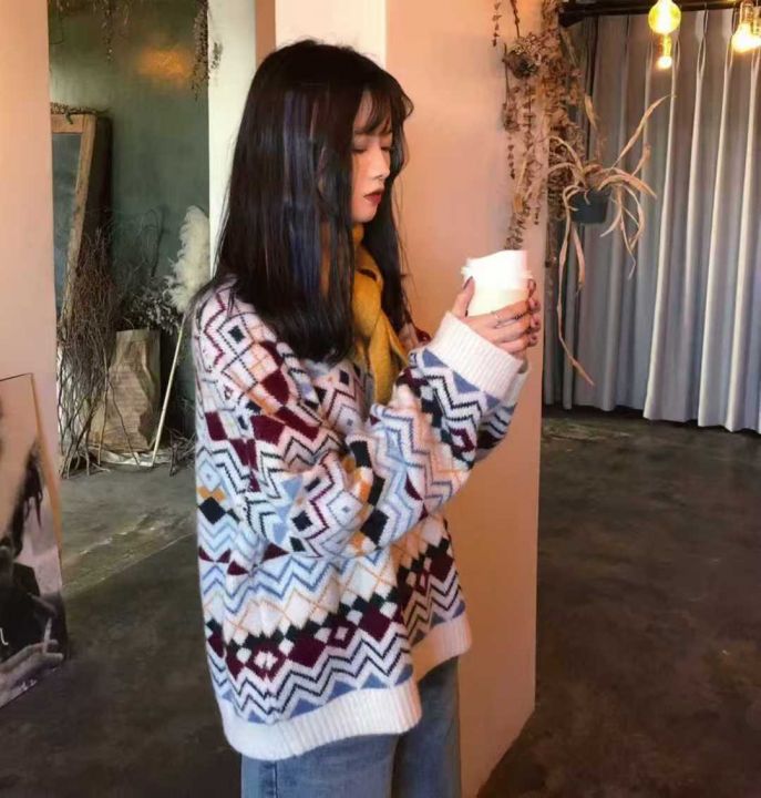 秋冬新款V领提花宽松慵懒风包芯纱套头毛衣,独立包装,均码面料软糯舒适弹...
