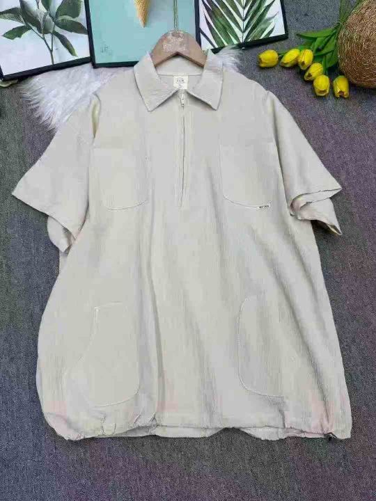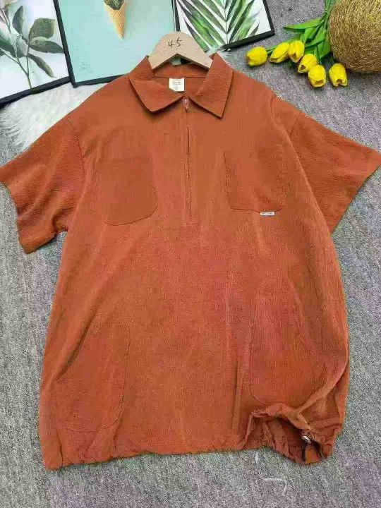 捡漏100件日系复古拉链潮牌翻领短袖t恤潮流宽松百搭工装衬衣,独立包装,码数1-3码(XL-3XL),货号925/81