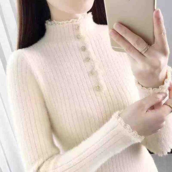 690件,2025年多巴胺半高领水貂绒针织上衣,秋冬季修身纯色百搭,均码大弹力,实体店品质面料柔软舒适,独立包装