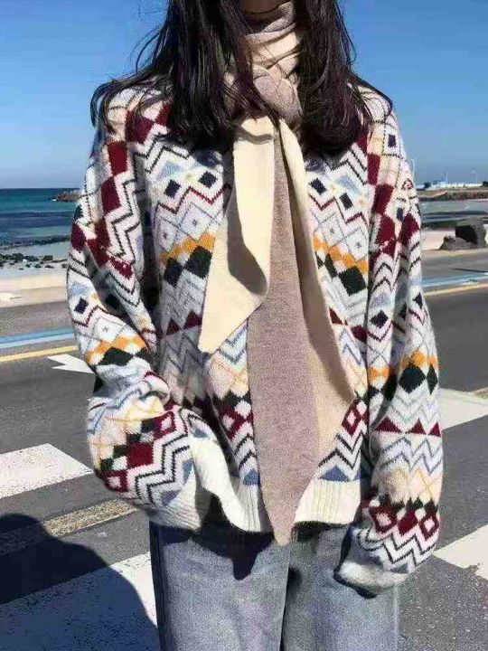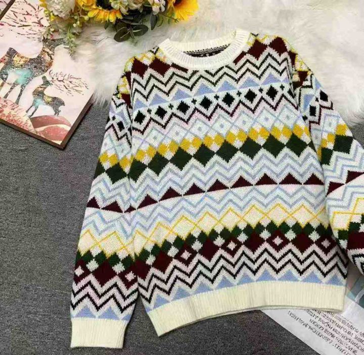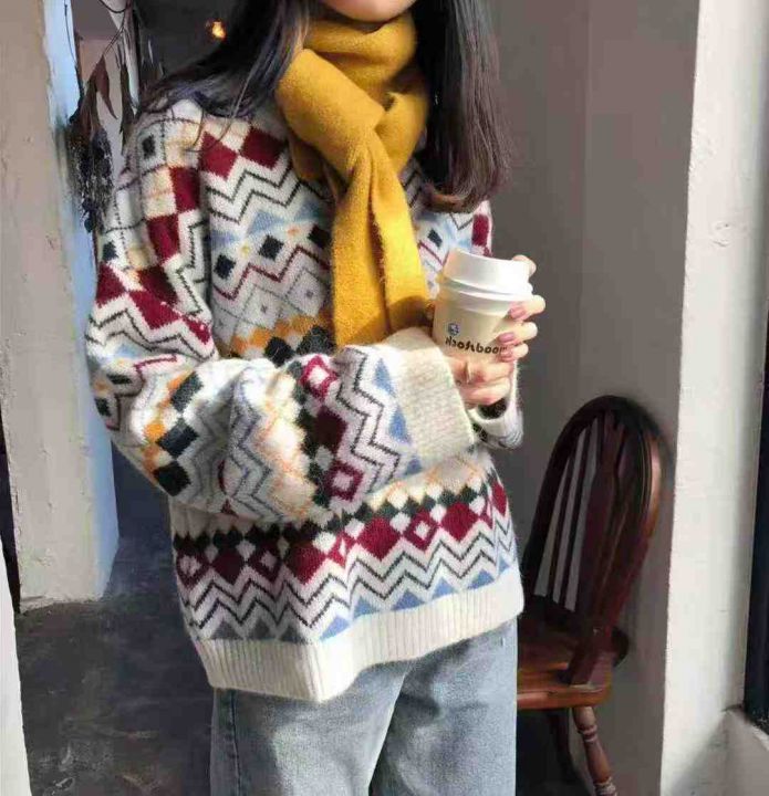 秋冬新款宽松慵懒风提花圆领北极绒套头毛衣,独立包装...