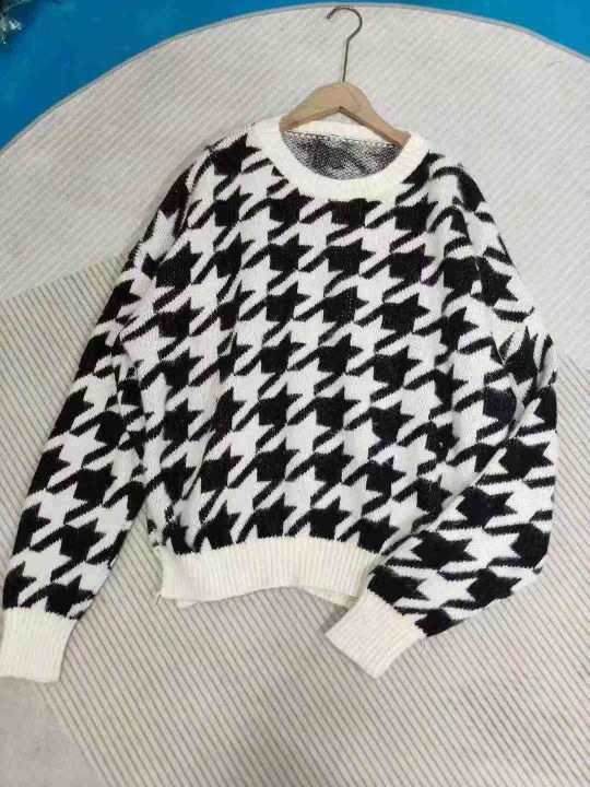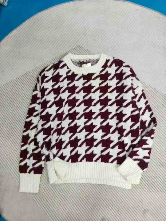 52件女装圆领千鸟格套头毛衣,宽松大版慵懒风,独立包装货品干净