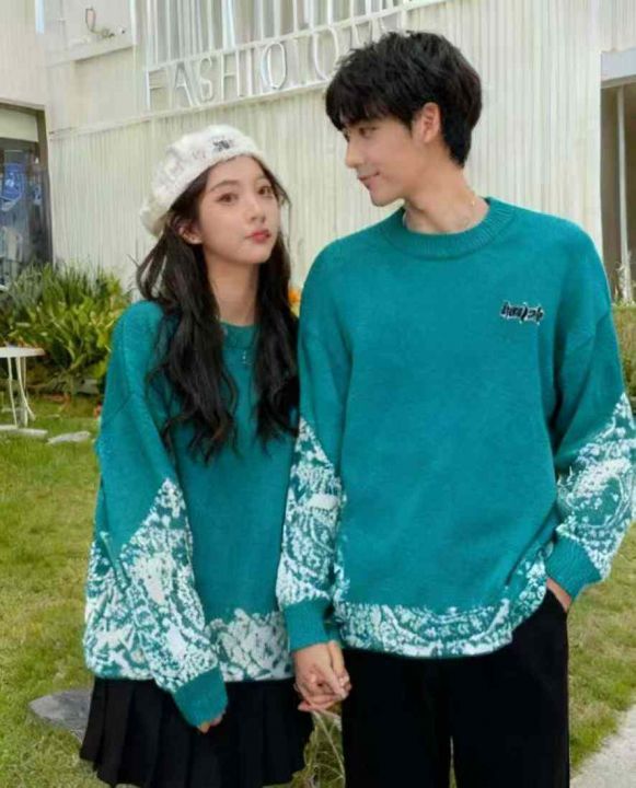 秋冬新款宽松慵懒风男女同款百搭提花圆领北极绒套头毛...