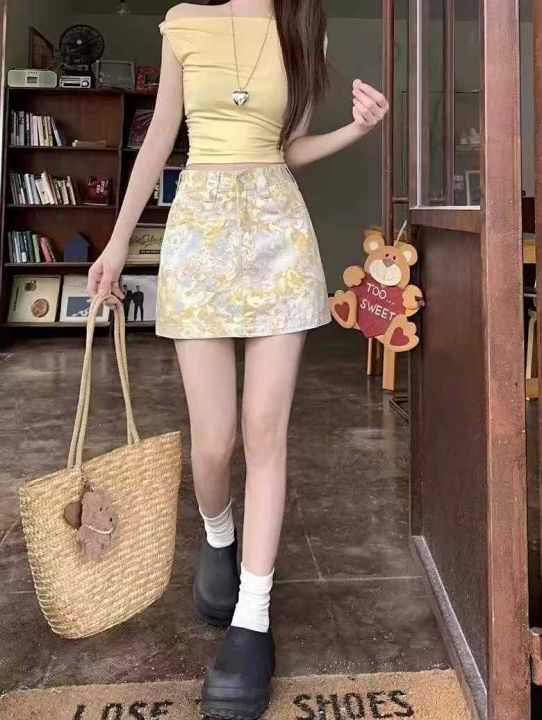 品牌原单夏季新款洗水棉网红小清新牛仔短裙,独立包装...