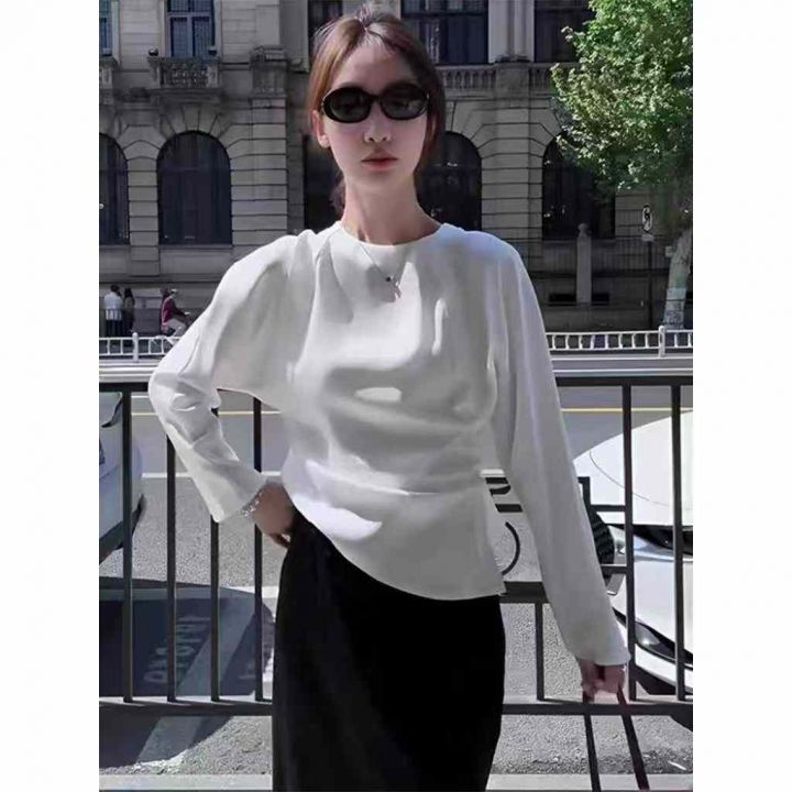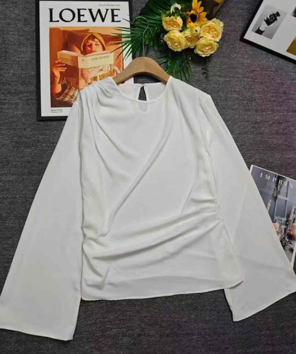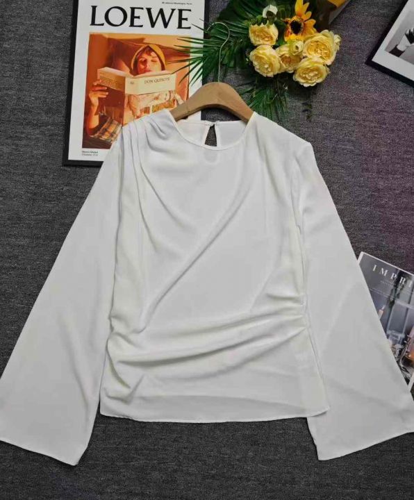 工厂回收171件轻奢风褶皱纯白长袖绸缎上衣,码数S-XXL。面料丝滑柔顺,模特图仅供参考,全部独立包装。