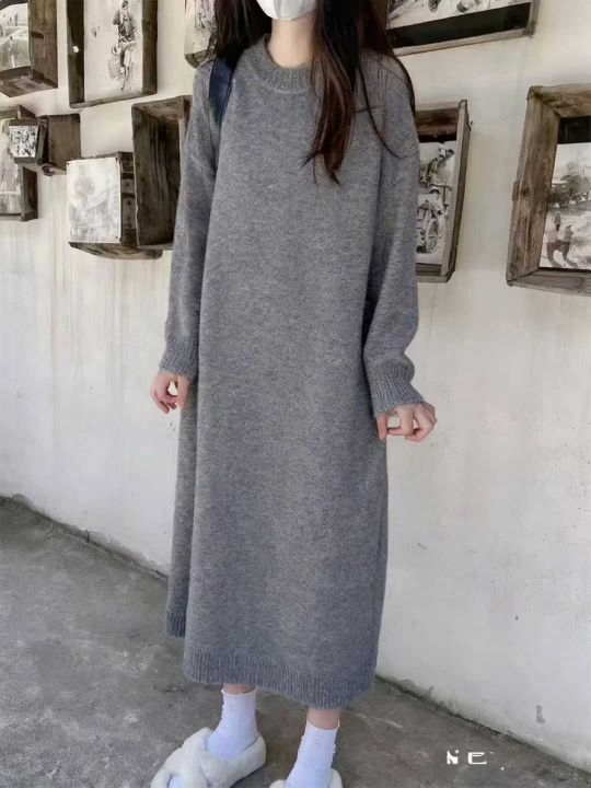 秋冬新款法式复古宽松简约中长款毛衣连衣裙,独立包装,均码面料软糯厚实,...
