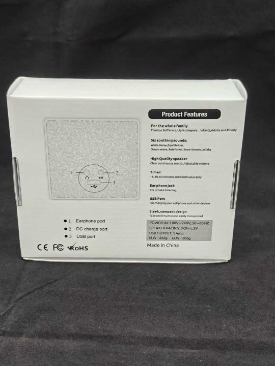 出口欧美白噪音助眠仪、舒缓声音老人小孩助眠神器。六种声音,30分钟/60分钟/90分钟,三种定时模式。配有充电器和线。全新原箱,40台一箱,到货2000台[握手]