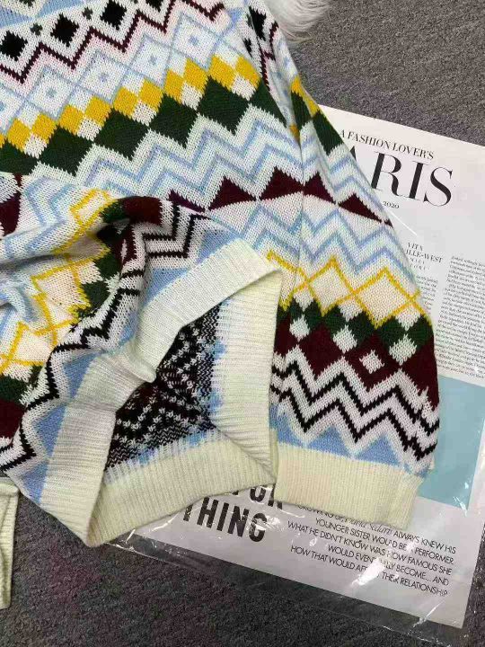 秋冬新款宽松慵懒风提花圆领北极绒套头毛衣,独立包装...