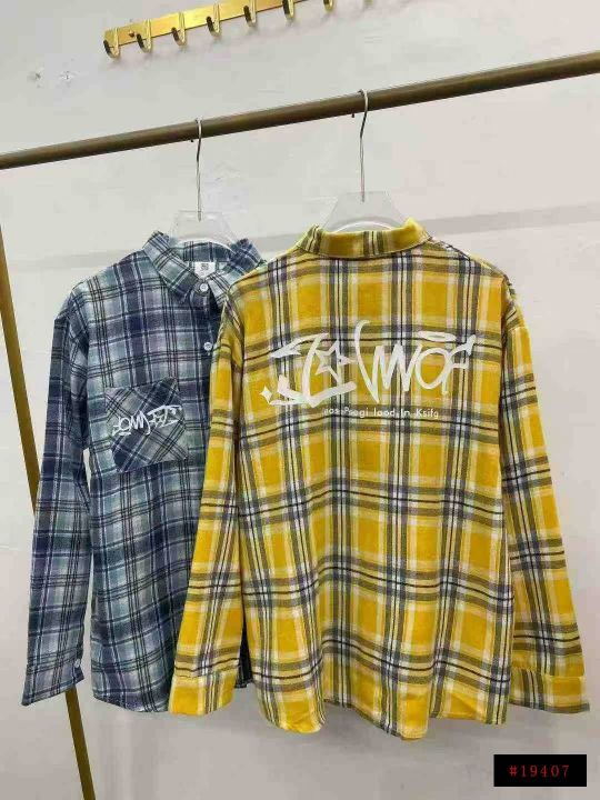 美式复古格子衬衫44件9.5,前后字母印花,有口袋,弧形下摆设计,码数1和3...