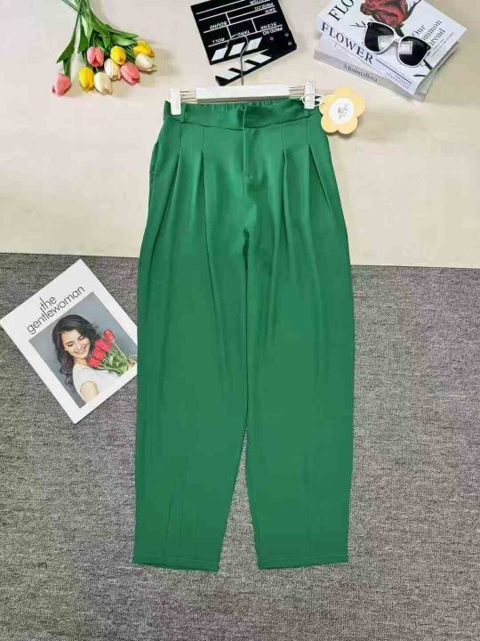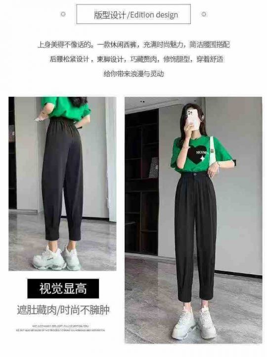 品牌高品质女裤系列~休闲束脚九分高腰宽松哈伦裤显瘦西装裤,整款三色,裤头内里包边包条,做工精致面料好,数量176条,码数M-2XL,独立包装带吊牌