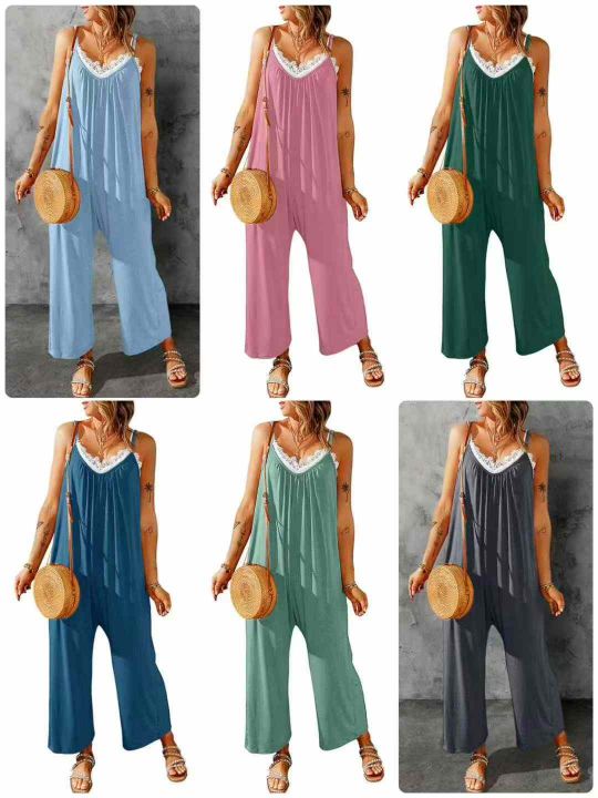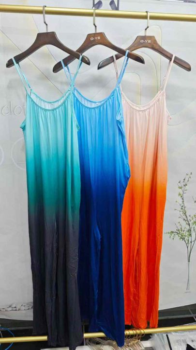 电商仓回收3560件爆款跨境吊带宽松纯色扎染渐变印花阔腿连体裤女,码数S-2XL。单款十几个花色,肩带可调节,两侧有口袋,面料柔软有弹性很有分量感,有独立包装,分货➕1