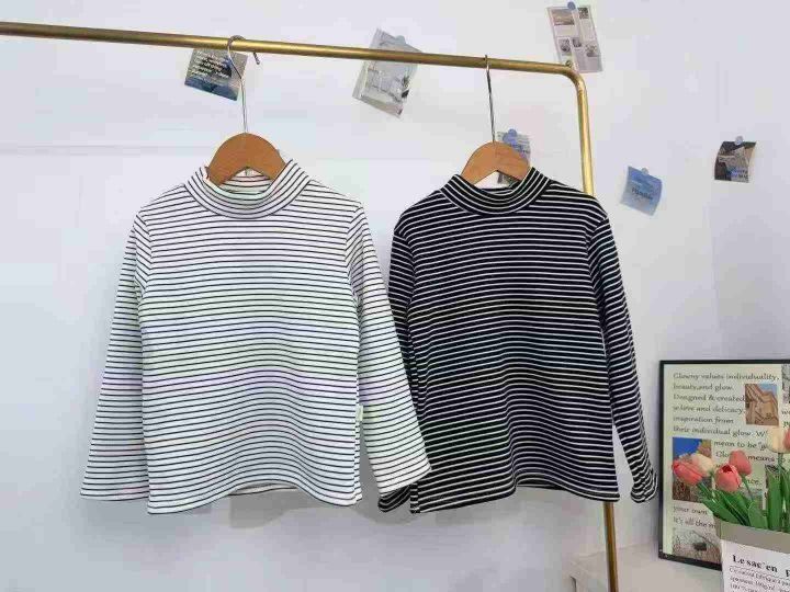 实体店下架时尚秋冬童装条纹加绒打底衣 200件左右 码数100-160 单款2色 货品干净 1手码1包 婴儿绒 面料柔软舒适 全清5.8