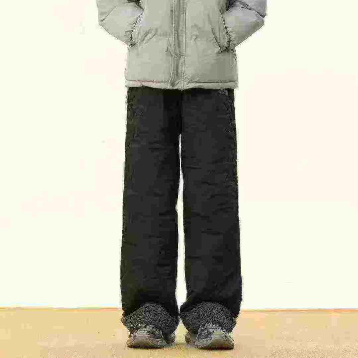 防寒休闲羊羔保暖裤男女冬季潮宽松葫芦纹防水直筒裤加绒滑雪棉裤,数量452...