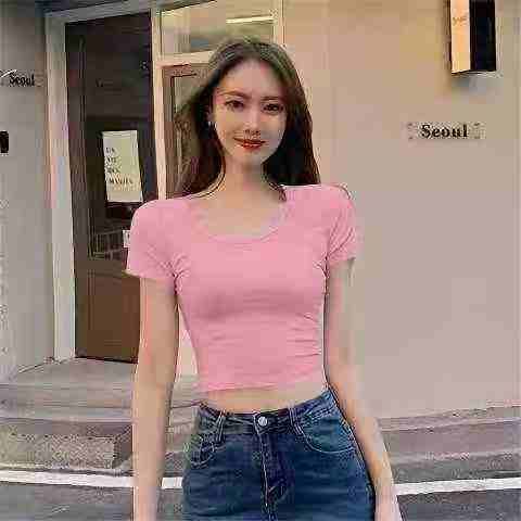 全清价4.8露脐辣妹短袖t恤女糖果色修身显瘦短款上衣ins潮,独立包装,码数s...