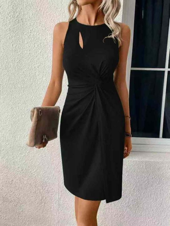 工厂回收220件欧美风街头时尚亚马逊速卖通新款镂空露背无袖收腰褶皱连衣裙女,码数S-M。有独立包装。分货➕1