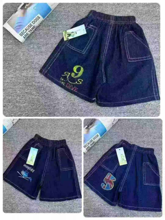 ️️男女童牛仔短裤子,新款中小童字母刺绣斜插大口袋,工装牛仔短裤儿童休闲五分裤,独立包装,码数S M L,数量9800条,全清4.9元,分货➕0.5