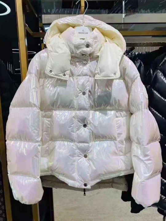 Moncler/蒙口秋冬新款镭射面料炫彩连帽羽绒服,短款白...