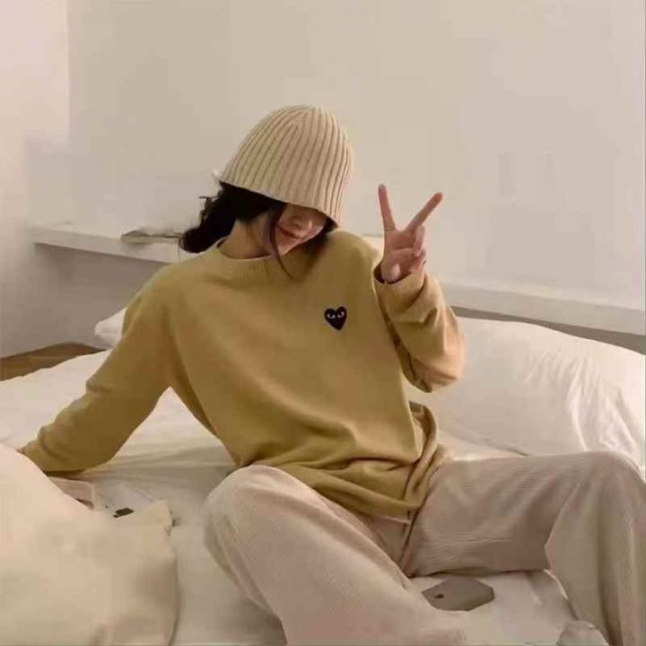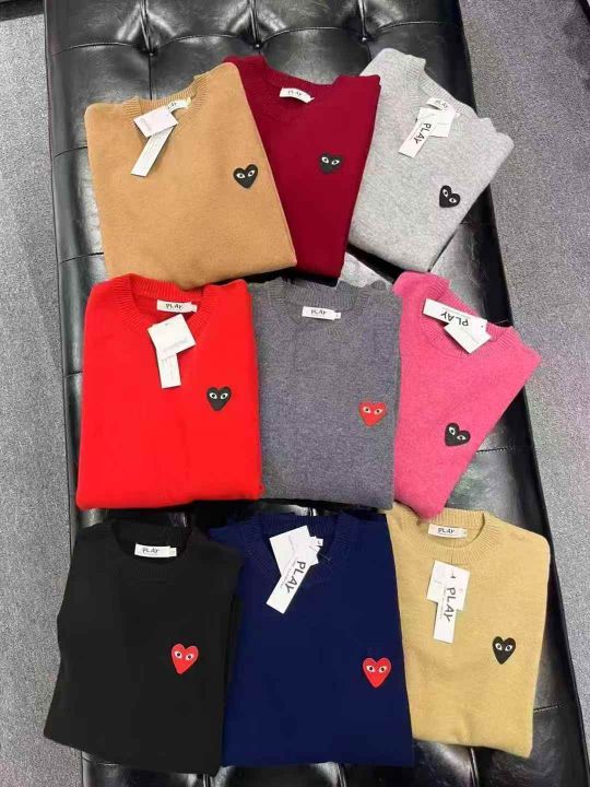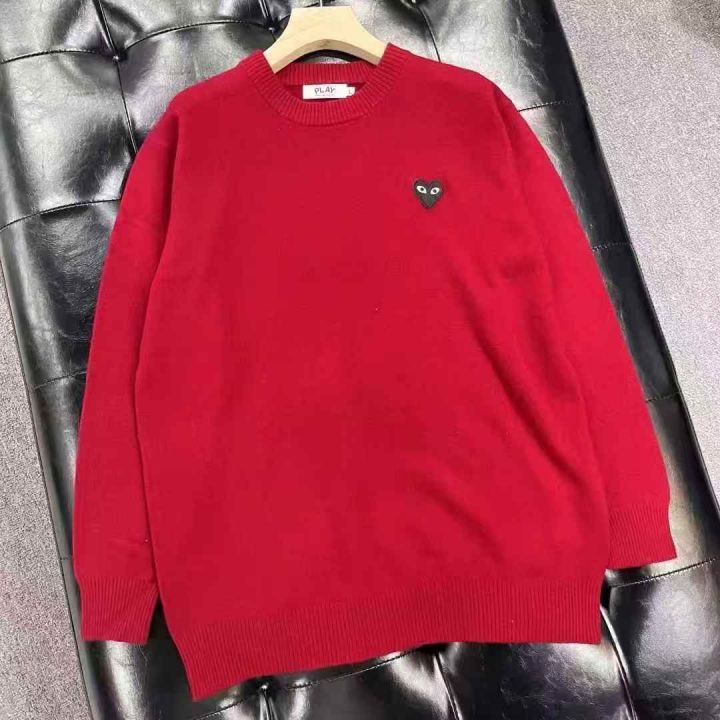 川久保玲CDG PLAY男女款[玫瑰]圆领套头毛衣,纯羊毛S-...